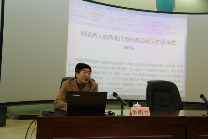 2016年12月16日上午,应星空XKXK星空体育邀请,长江师范学院副院长、西南大学XK星空体育博士生导师张明富教授在我校10号教学楼C区7楼学术报告厅作了题为《明清商人的商业行为与商品经济的矛盾性》的学术报告。报告由我校副校长田澍教授主持,XK星空体育张嵘副教授、杨芳副教授以及博士、硕士研究生、本科生等150余人聆听了此次报告。