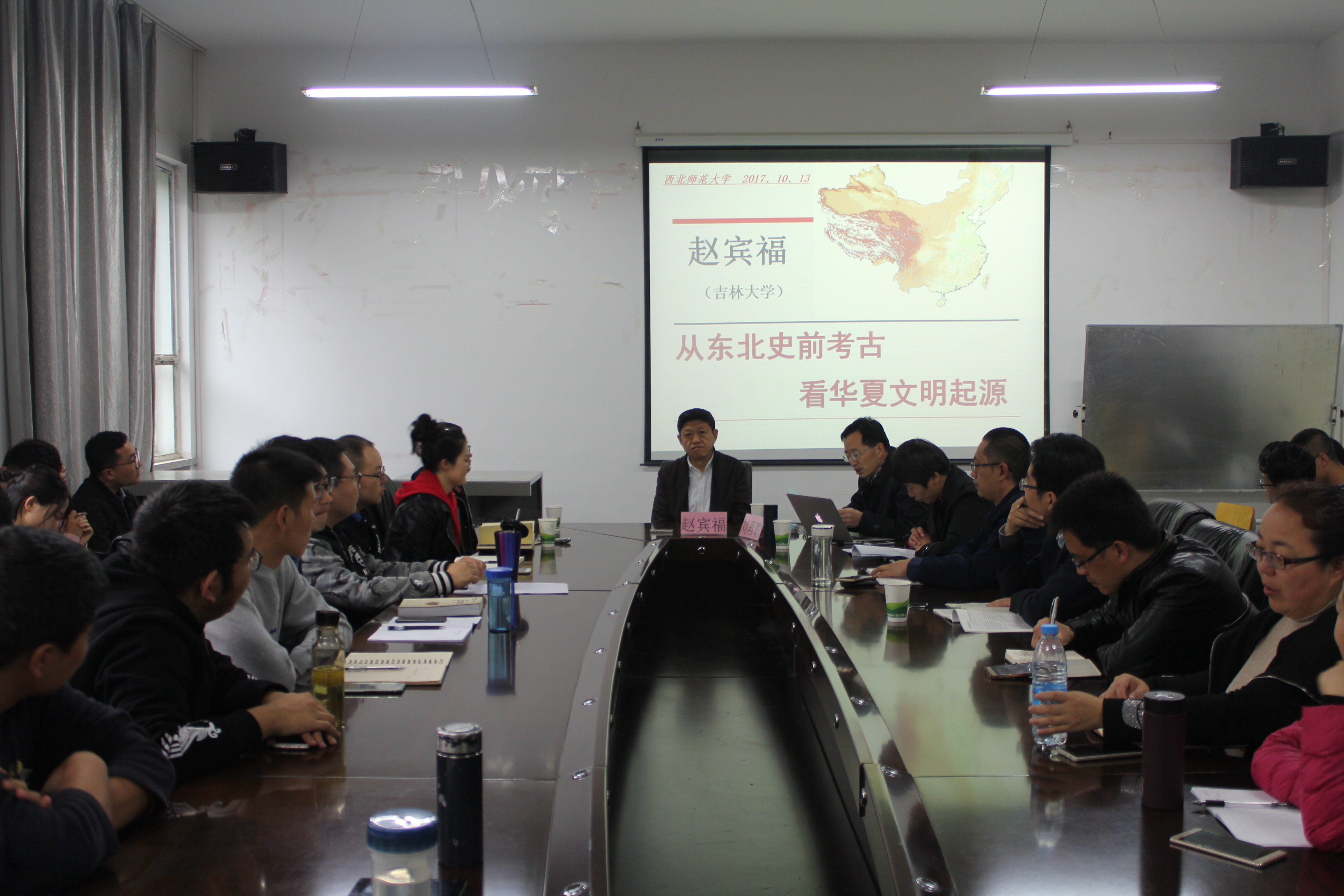 2017年10月13日,应XK星空体育、丝绸之路文明复兴与中国向西开放协同创新中心邀请,教育部长江学者特聘教授、吉林大学博士生导师赵宾福教授在教学6号楼204会议室做了《从东北史前考古看华夏文明起源》的学术报告。兰州大学任瑞波博士,我校旅游学院教师任赟娟,星空XK教师僧海霞、李迎春及博士生、硕士生近100人参加了报告会,刘再聪副院长主持报告会。