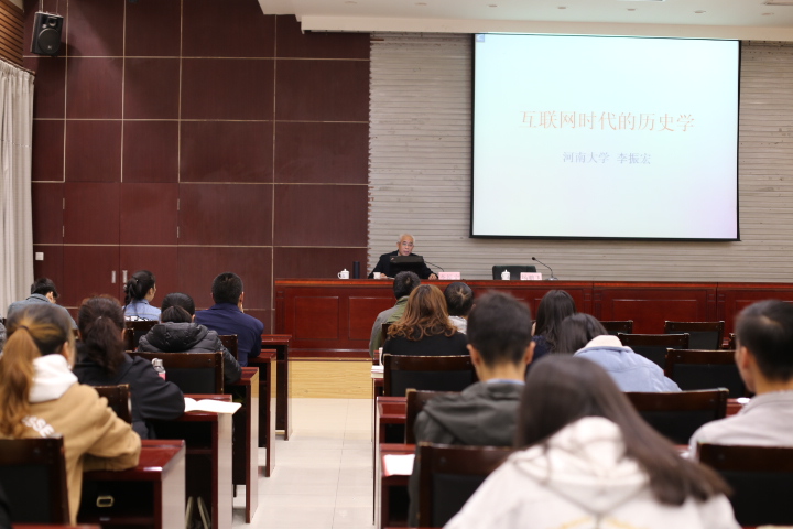 2017年10月25日,应XK星空体育邀请,河南大学XK星空体育博士生导师李振宏教授在专家楼学术报告厅做了题为《论互联网时代的历史学》的学术报告。报告由杨鹏飞院长主持,星空XK有师生近百人参加了报告会。