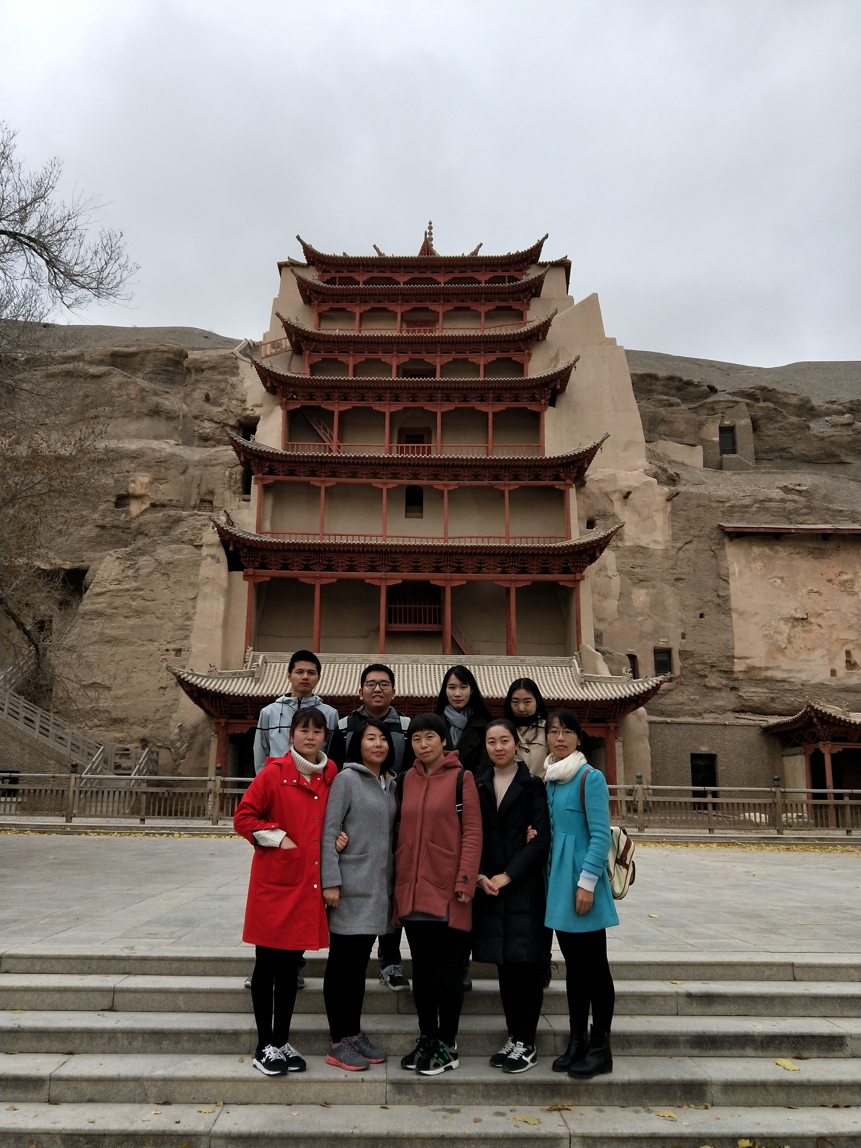 2017年11月7日至12日,僧海霞老师一行九人赴敦煌,考察祁连山西段的山脉、河流、地貌形态和农耕区的分布状况。在敦煌期间,僧老师一行考察了敦煌市博物馆、莫高窟、西千佛洞、阳关、玉门关、汉长城遗址、雅丹地貌、榆林窟、瓜州县博物馆、悬泉置遗址以及药王洞、雷音寺、白马塔等历史遗存。