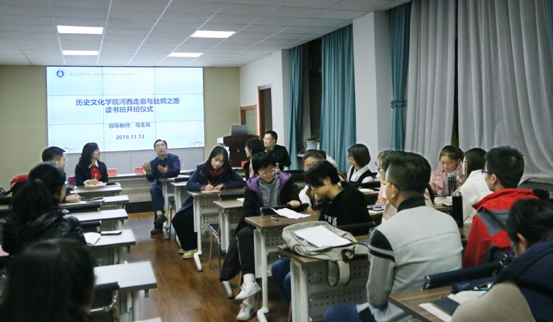 马玉凤老师讲到,“河西走廊与丝绸之路”读书班将以问题为中心展开阅读与交流,同学们根据自己的兴趣选择相关主题进行拓展阅读与学术研究,形成问题意识,不断深化认识,提高研究能力。读书班每两周举办一次,每期设定一个主题,邀请学有专长的老师及博士研究生参与、指导,与同学们一起讨论交流,旨在进一步改进教学模式和增进师生互动,更好地培养学生的学术兴趣和提高学生的专业素养。