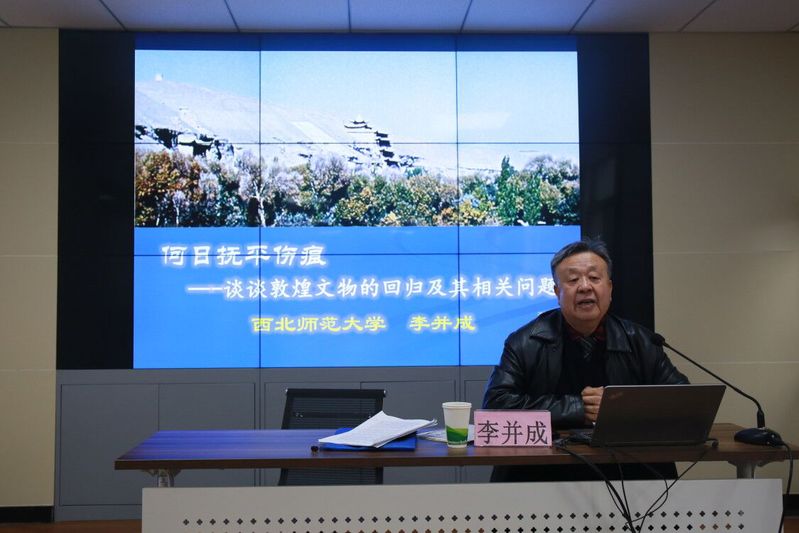 本次讲座共有四个部分:第一是敦煌文物回归的意义;第二是斯坦因等人劫掠敦煌文物的非法性;第三是追讨文物的有关国际法规;第四是流失国宝回归的途径。讲座伊始,李并成老师通过展示有关敦煌文物的图片让在场师生对敦煌文物有了一个大致的了解。敦煌文物本身蕴含着极为巨大的历史、科学和艺术价值,是我国古代文明具有权威性的历史标本和物化载体,是中华民族智慧的结晶和文明的象征,是中国传统文化的核心组成部分之一,也是中外经济文化友好交流的生动历史见证,是古丝绸之路上留存的一笔丰富的历史遗珍。敦煌文物的主权从来就是我们的,保护文化财产,促进文化财产归还原主国,是国际社会的广泛认识,是文化财产原主国人民不容剥夺的基本文化权利,也是各国政府义不容辞的文化责任。