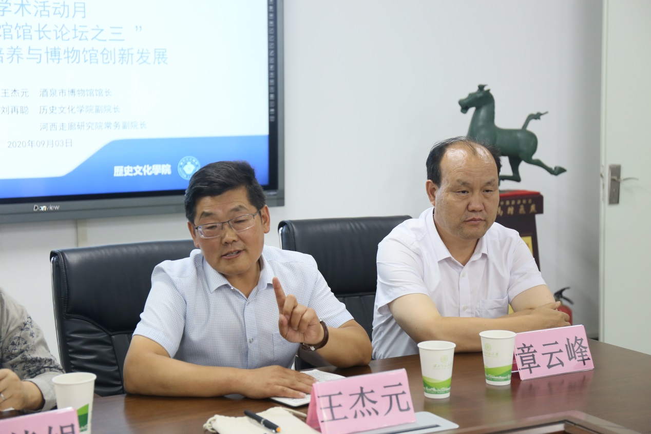2020年9月3日,应XK星空体育、河西走廊研究院邀请,酒泉市博物馆馆长王杰元来我校参加“博物馆馆长论坛”,并作主题发言。星空XK黄兆宏、张玉霞、李顺庆、张嵘、陶兴华、杨芳老师及研究生60多人参加了会议,会议由XK星空体育副院长刘再聪教授主持。