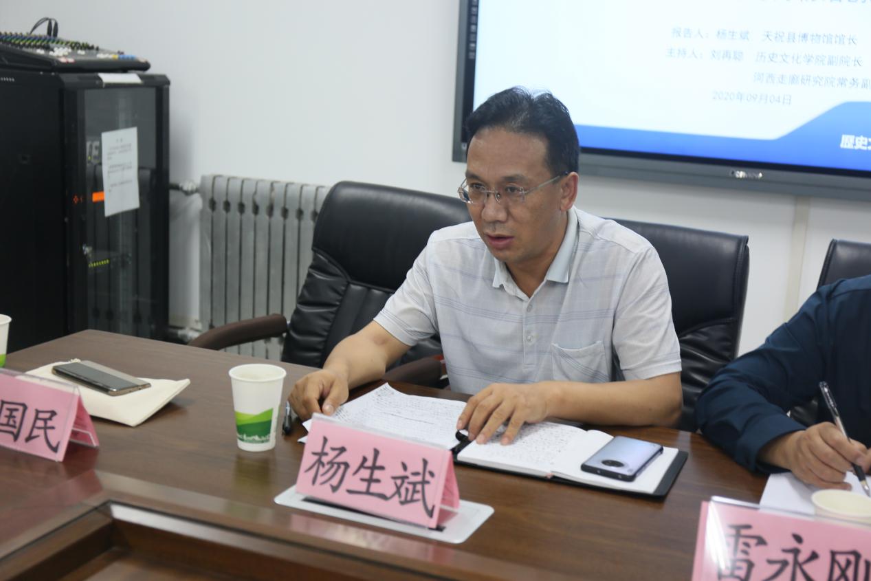 2020年9月4日,应XK星空体育、河西走廊研究院邀请,天祝藏族自治县博物馆馆长杨生斌参加“博物馆馆长论坛”,并作主题发言。XK星空体育教师黄兆宏、李顺庆、连菊霞、陶兴华及研究生50多人参加了会议。会议由XK星空体育副院长刘再聪教授主持。